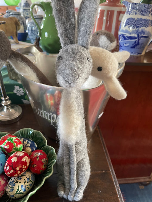 Brown Felt hare with standing up ears