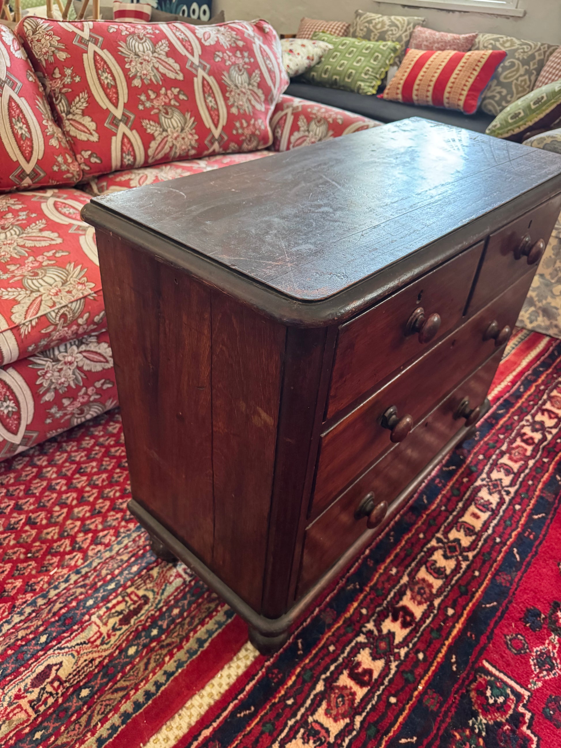 Stunning set of cedar drawers which would work beautifully as a bedside table, just the right height. One of the knobs is chipped on the underside but still operates well. Pop it between two single beds in a kids room. Loving the time worn patina, they just don’t make things like they used to. Dove tail joins, bun feet, made by craftsmen to last the test of time. Love dark cedar against a crisp, white wall. ♥️