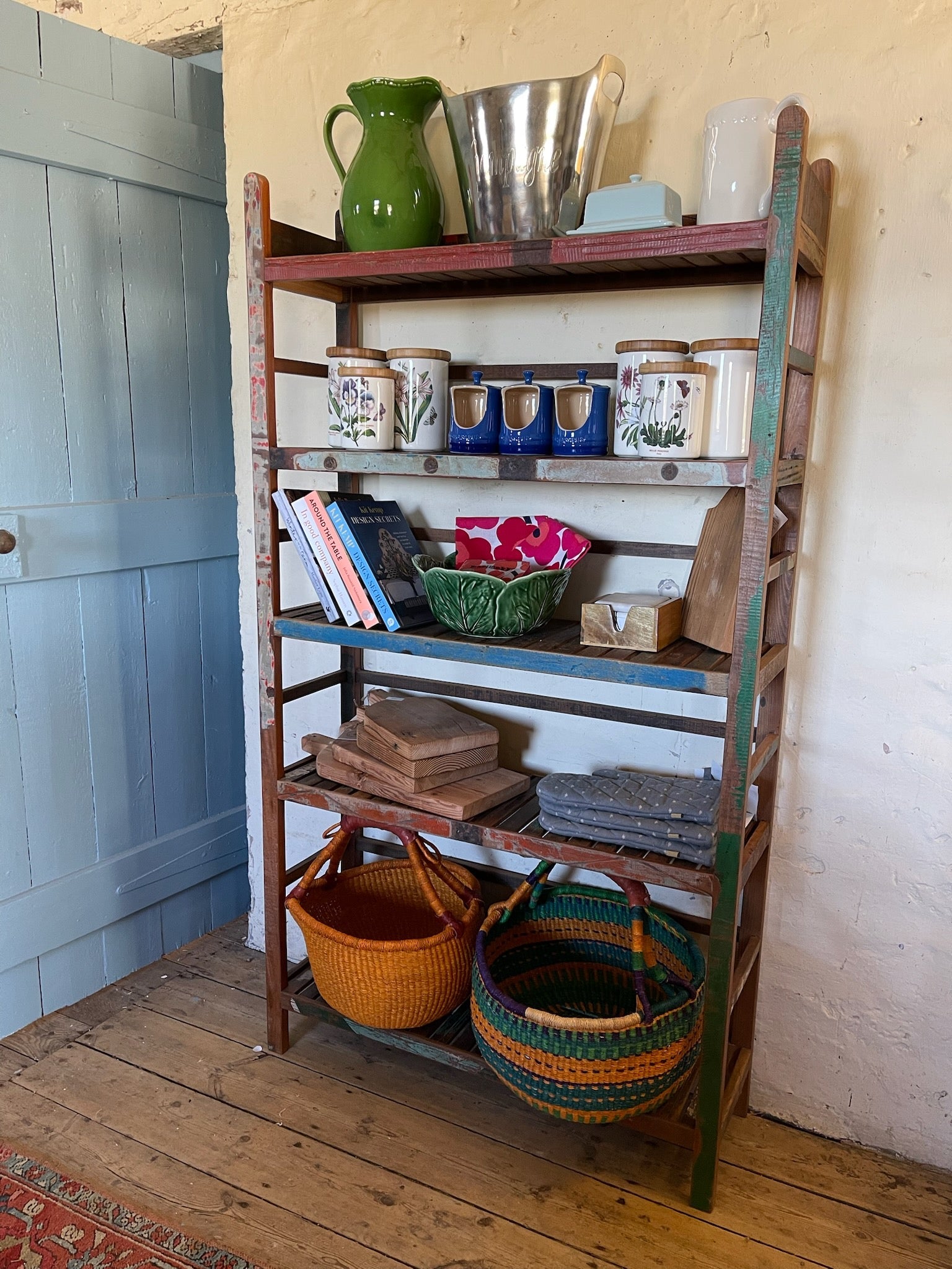 Fabulous rustic Baker’s stand, with a lovely patina, that was originally used to stack bread. It could have many uses, stack books, shoes and boots, clothes, towels in your bathroom. Whatever! So many uses for this very cool piece!