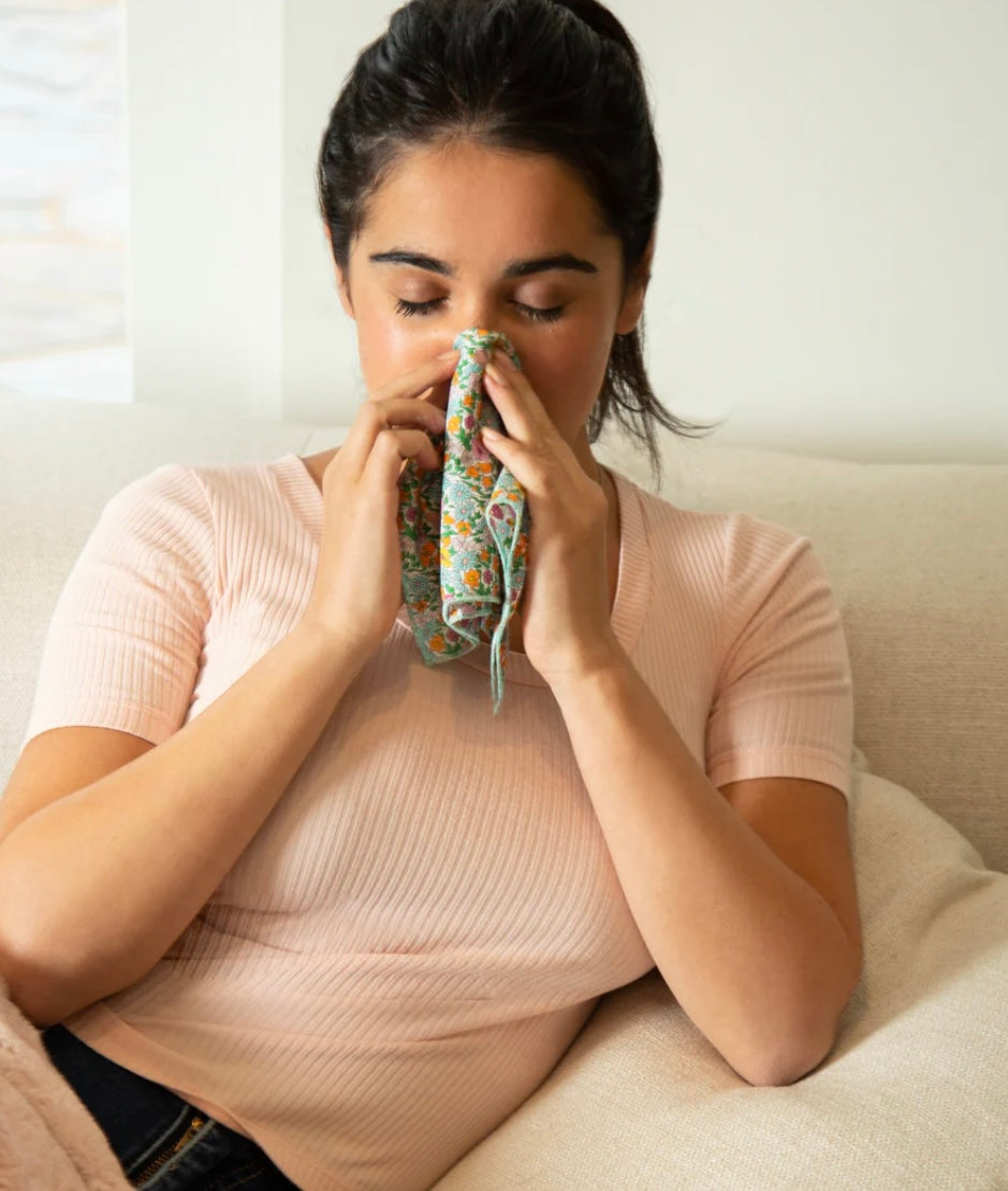 Replace tissues with these elegant hankies made from Liberty Tana Lawn Poppy and Daisy fabric. Finished with an overlocked edge these hankies are gentle on your skin and machine washable.