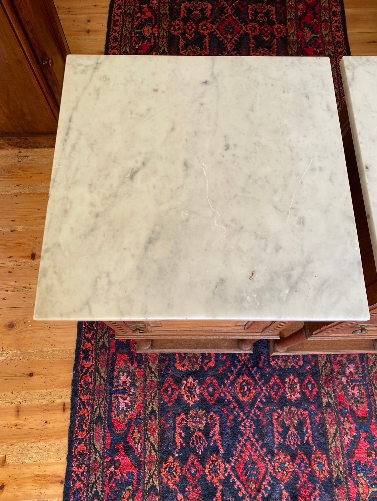 The marble tops come off for safe transporting the bedsides. They have a drawer and a cupboard for storage below. Please note there are some scratches on the marble, these can be seen in the close up photographs. Due to the age of antique pieces they are never 100 percent perfect. However they do have expert craftsmanship, thoughtful design and a time warm patina.