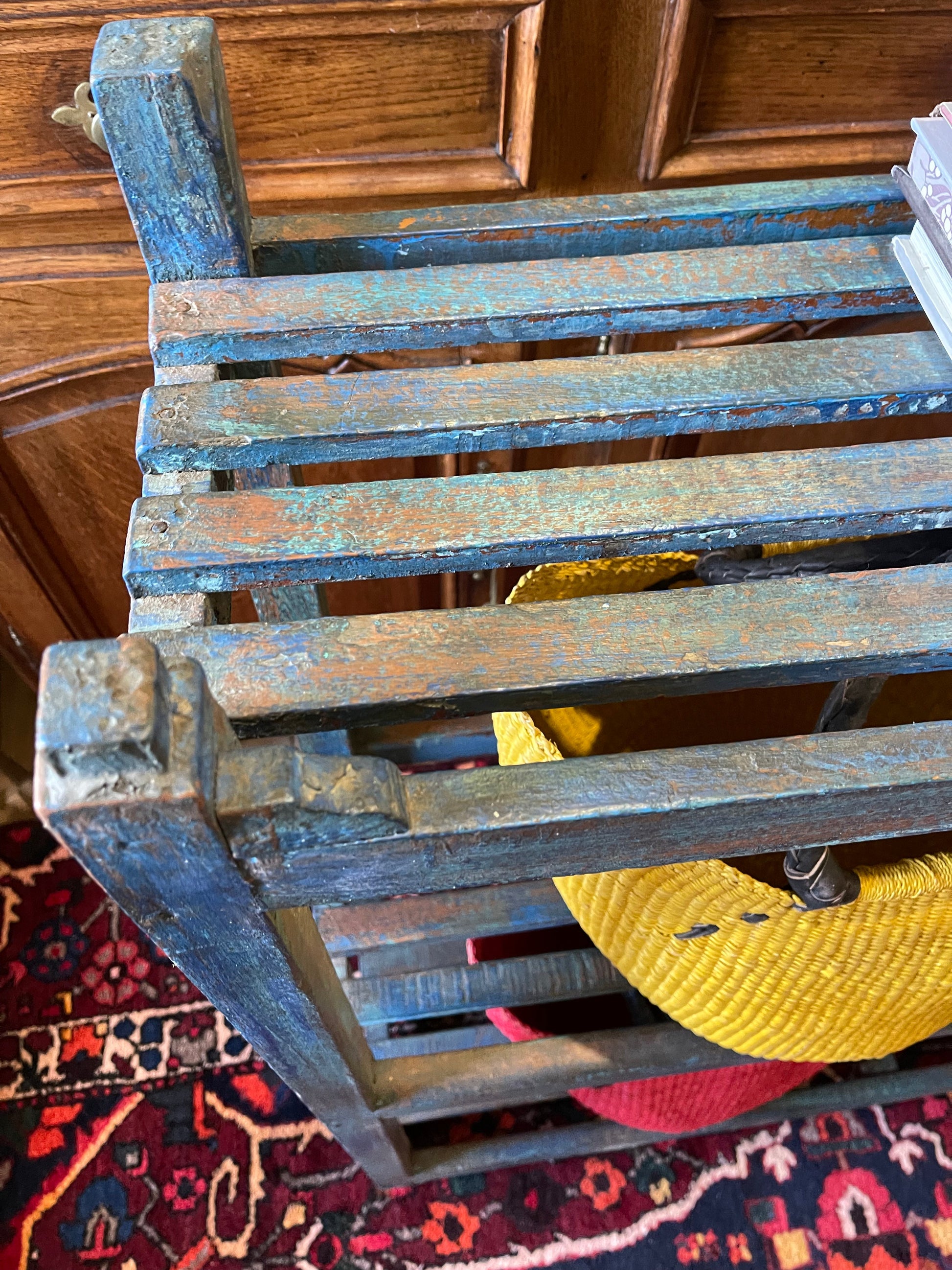 Fabulous rustic Baker’s stand, with a lovely patina, originally used to stack bread. It could have many uses, stack books, shoes and boots, clothes, school bags, towels in your bathroom. Whatever! So many uses for this very cool piece!
