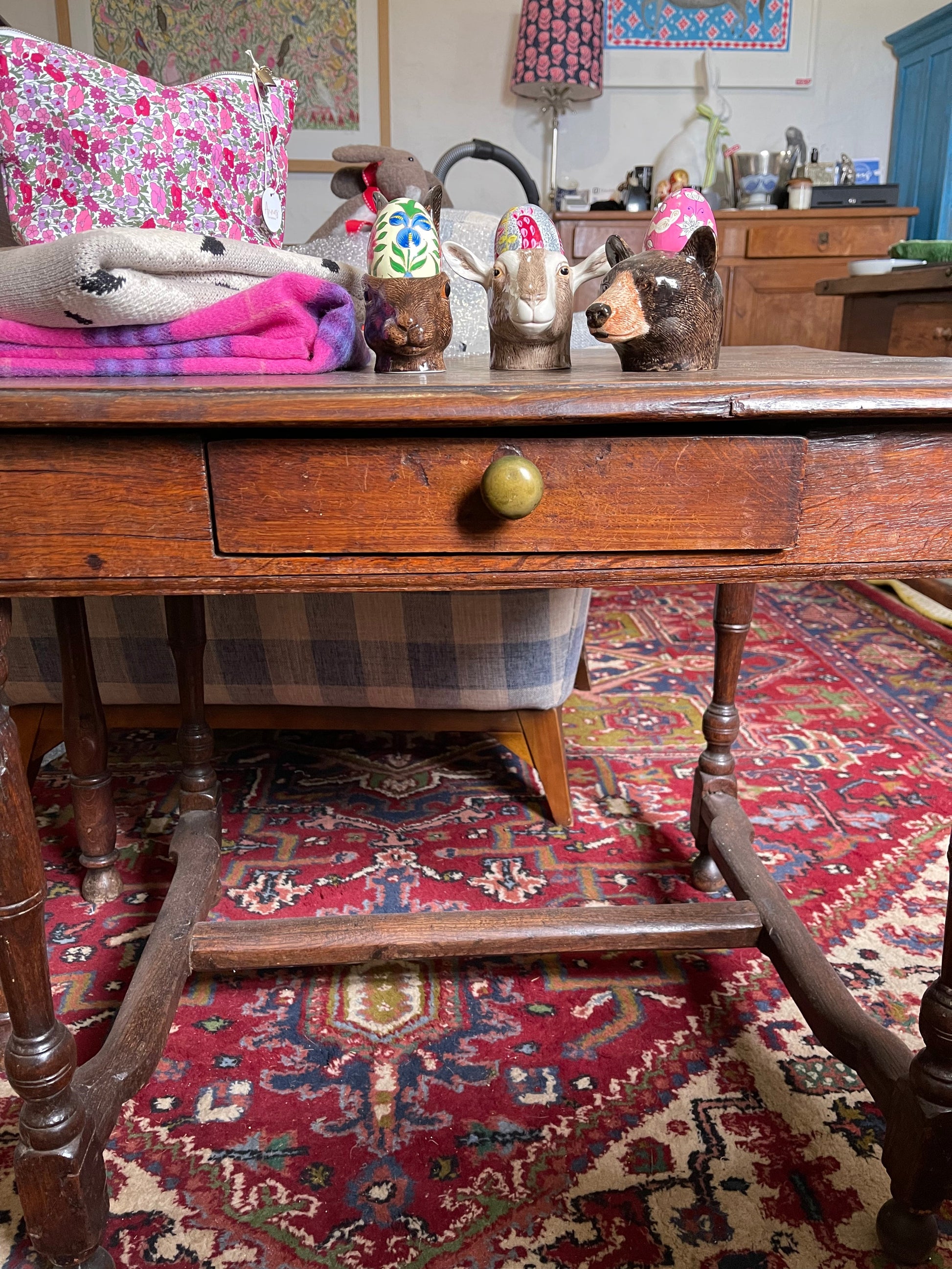 The sweetest little table with a stretcher base and so much character and style. This would work well in your living room, bedroom, entry/hall - anywhere actually.