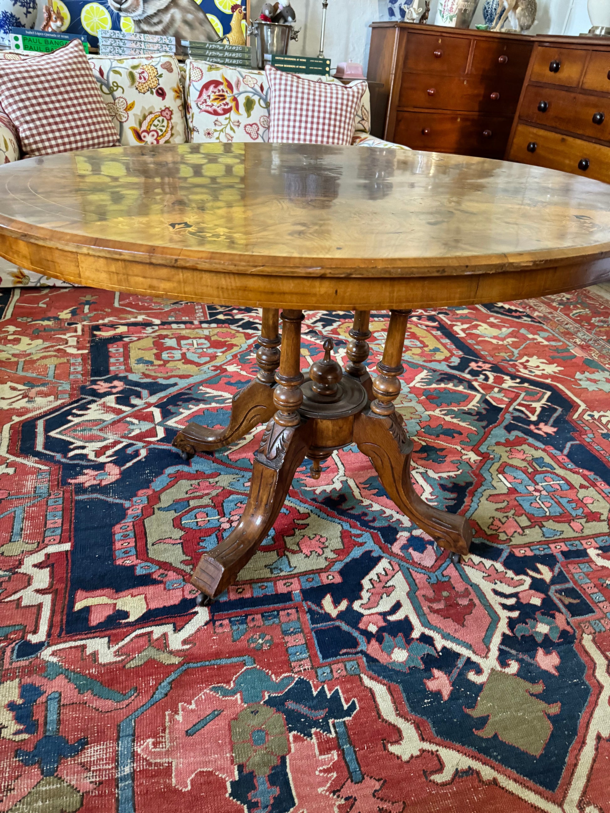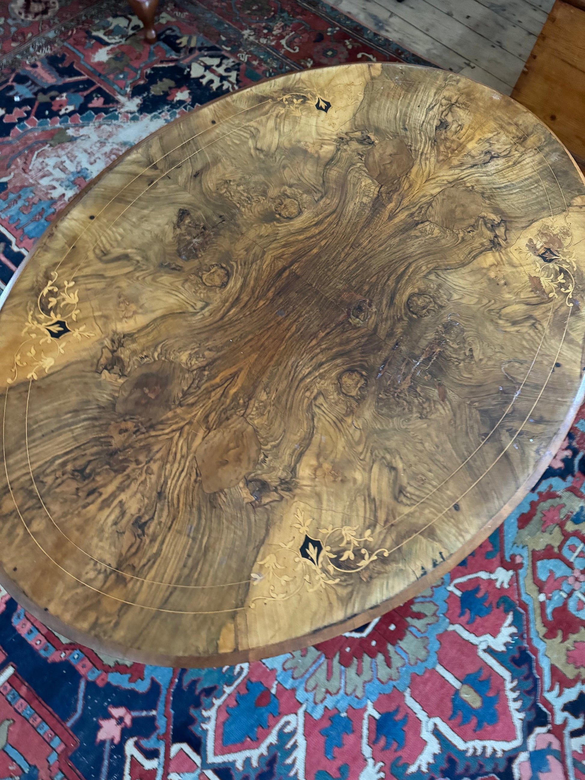 Absolutely stunning walnut burr table with gorgeous inlays and a birdcage pedestal base. These tables would be perfect in an entry or used as a side table in larger rooms topped with photo frames and your favourite collectables.